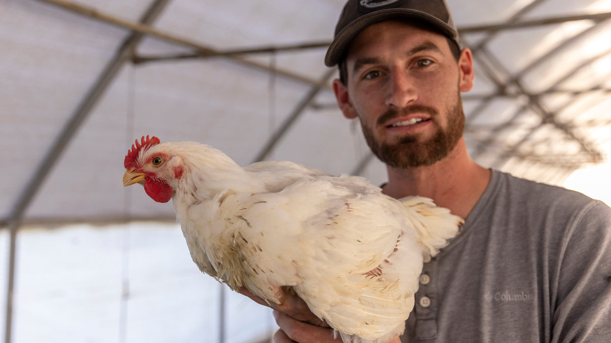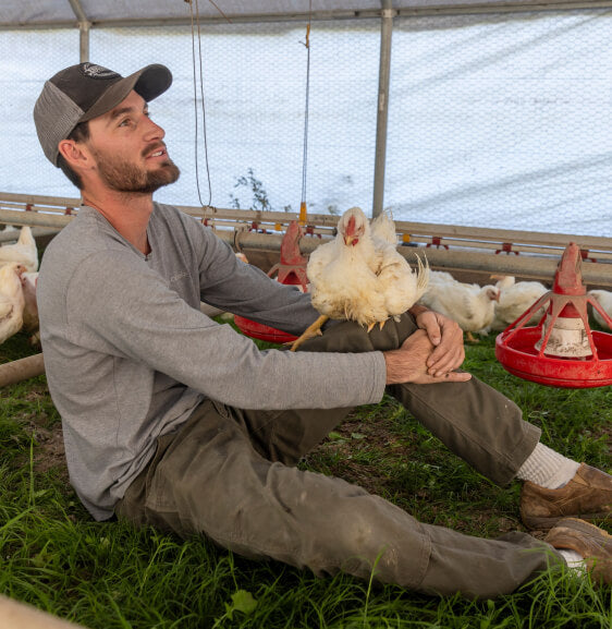 We feed USDA Certified Organic and Non-GMO Project Verified corn and soy as part of a much more diverse feedstock to our chickens to ensure their baseline nutritional needs are met. In addition to their feed, our chickens supplement their diets with native pasture grasses, bugs, and grit. We prioritize their supplemental diets by moving the birds to fresh pasture every day. Our farm and feed ingredients are never sprayed with harmful pesticides, herbicides, or desiccants like that of their conventional, "natural," and strictly "Non-GMO" counterparts.